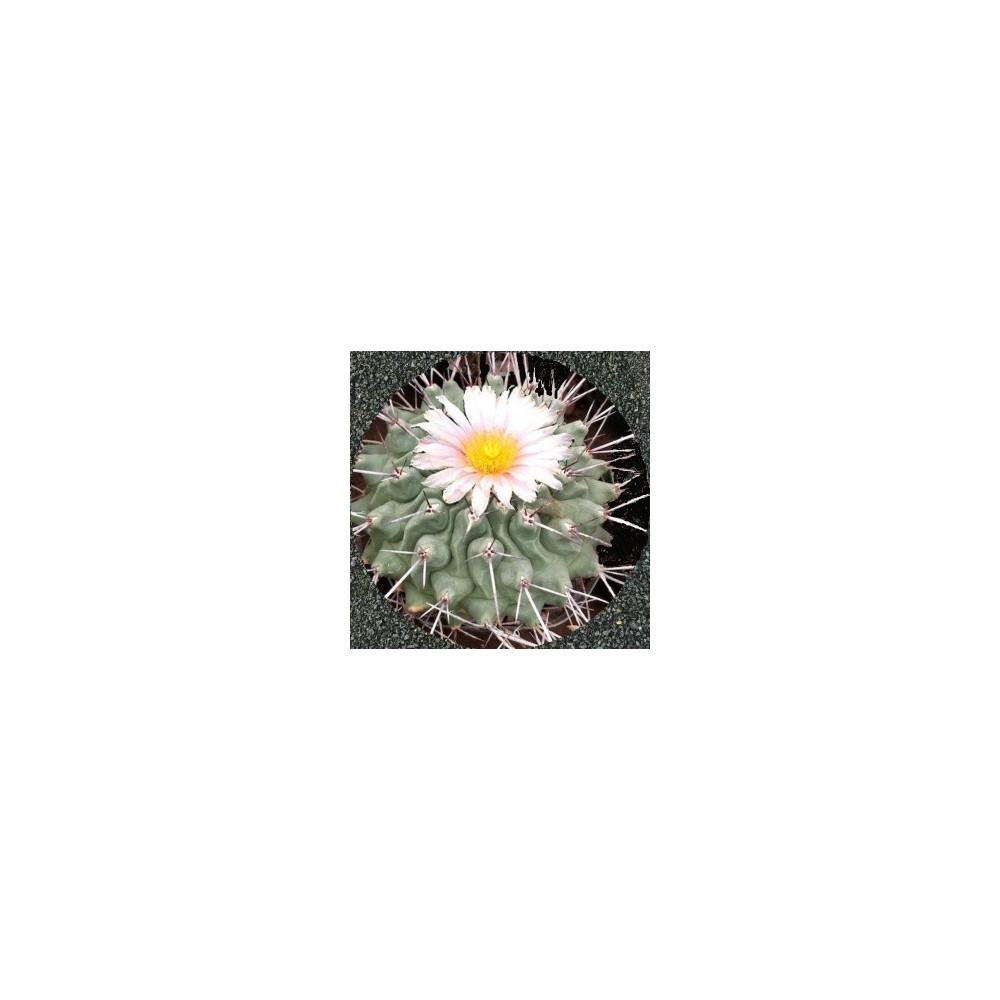Pozoruhodný, šedozelený kaktus se zploštělým vrcholem. Černohnědé trny jsou variabilní v délce. Lososové nebo bělavé květy s nažloutlým jícnem mají průměr až 3cm. Pochází z mexických států Coahuila a Nuevo Leon.