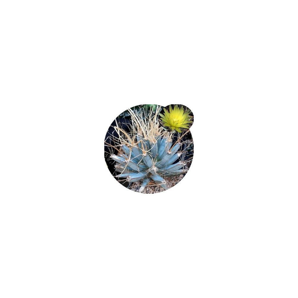 Argentinský kaktus s modravě zeleným, zploštěle kulovitým tělem o průměru 12cm je cca. 8cm...