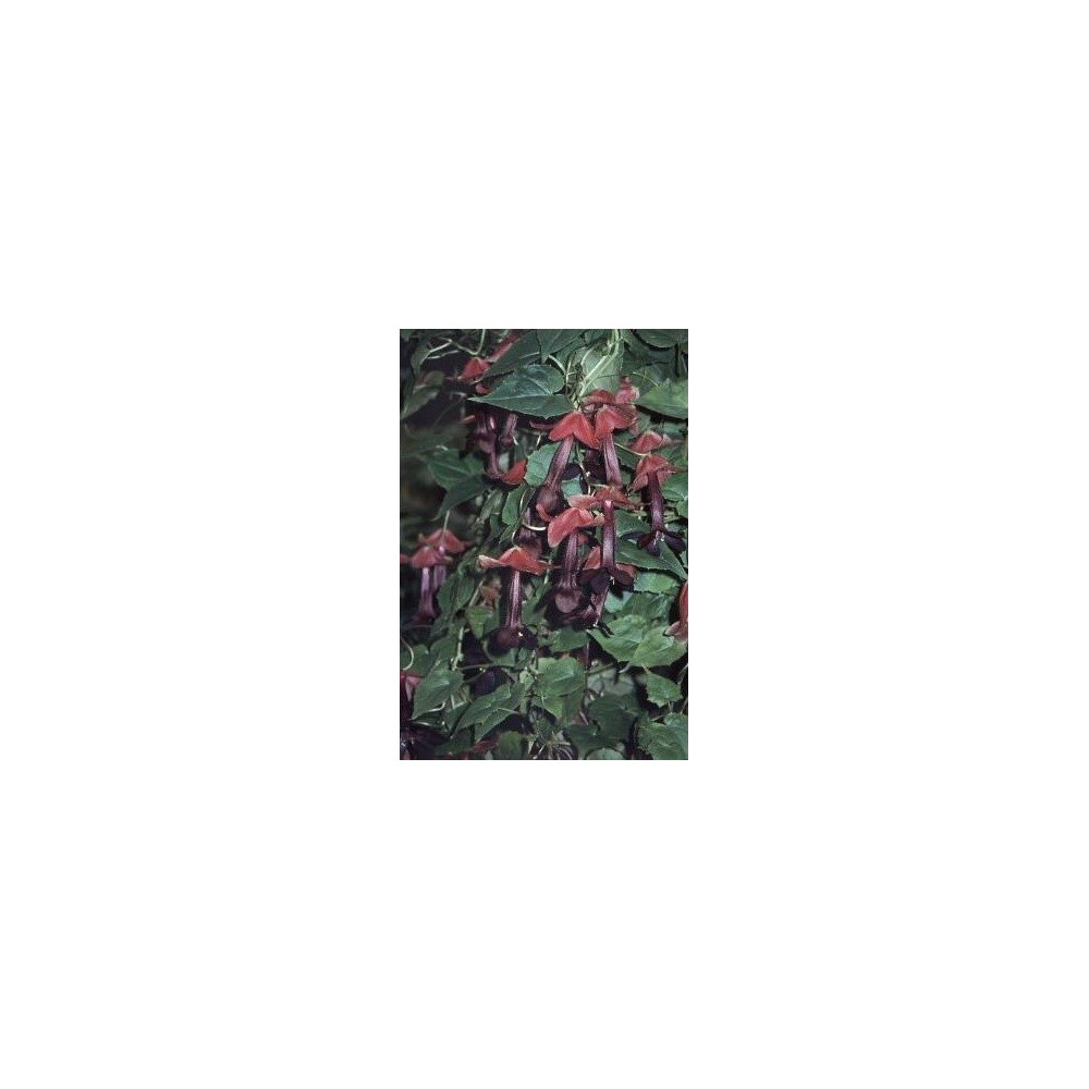 velmi zajímavá atraktivní rostlina, purpurově černý květ s listeny purpurové barvy tvaru zvonku, pnoucí letnička