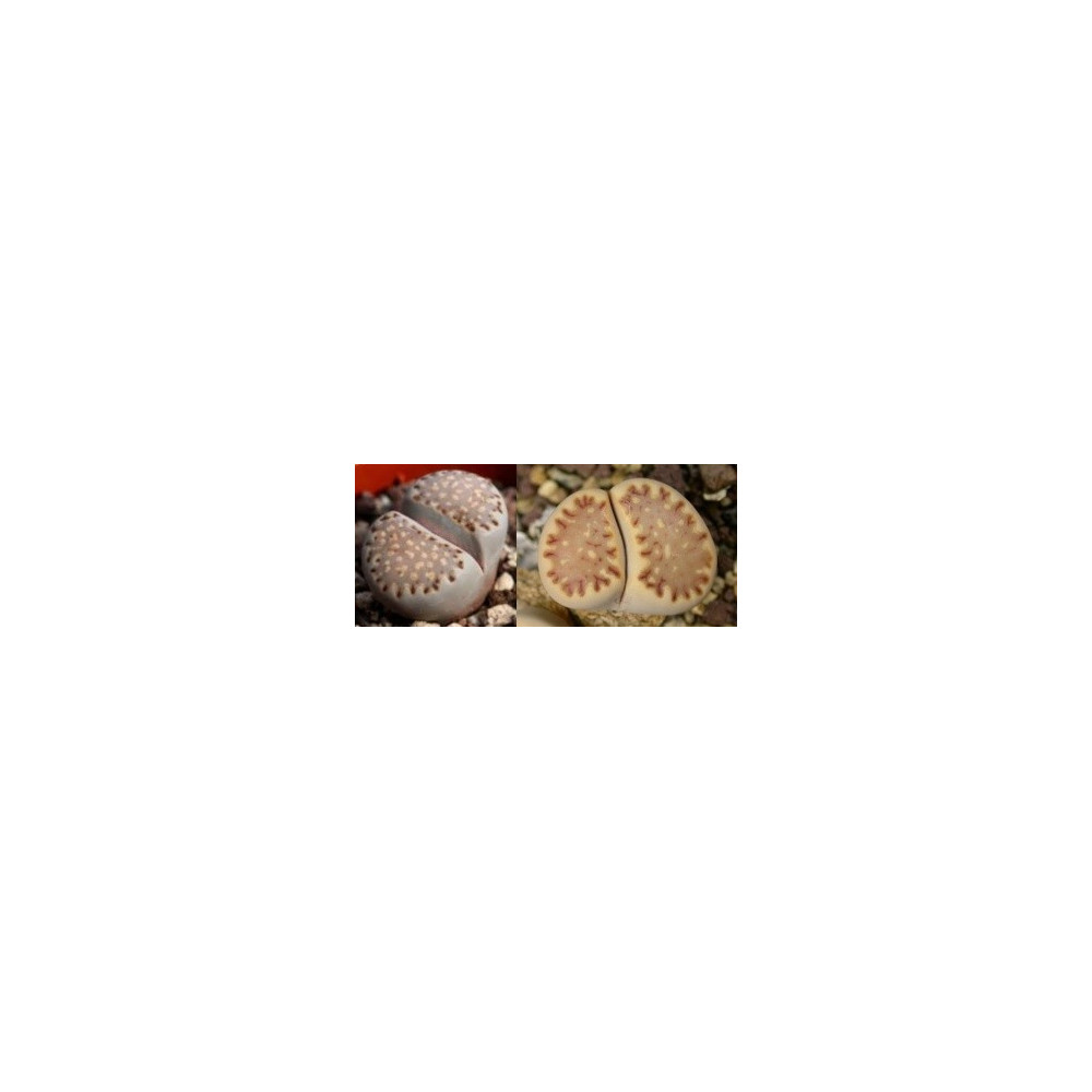 Horní strana listů je většinou zploštělá. Jeden ze snadněji a rychleji rostoucích druhů Lithops....