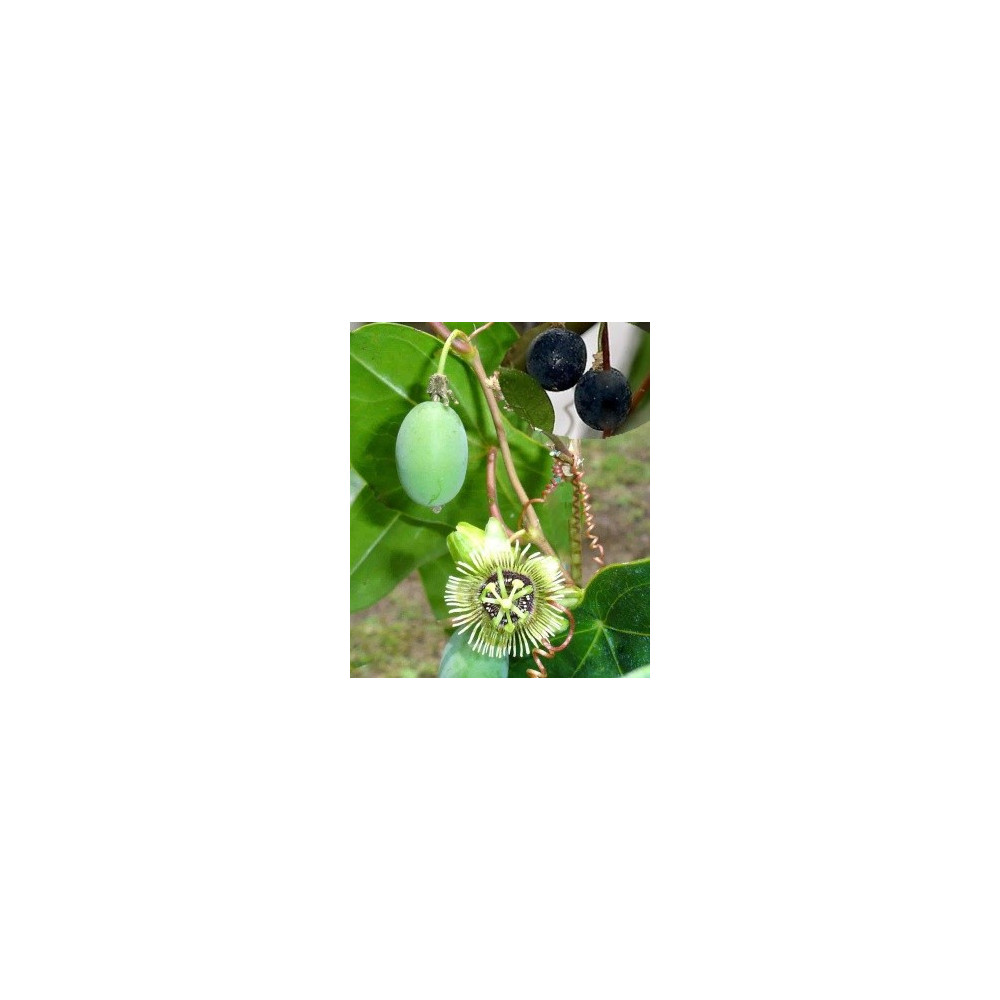Mučenka, různě tvarované, středně zelené listy. Krémové až žlutavě zelené květy 2,5cm široké s...