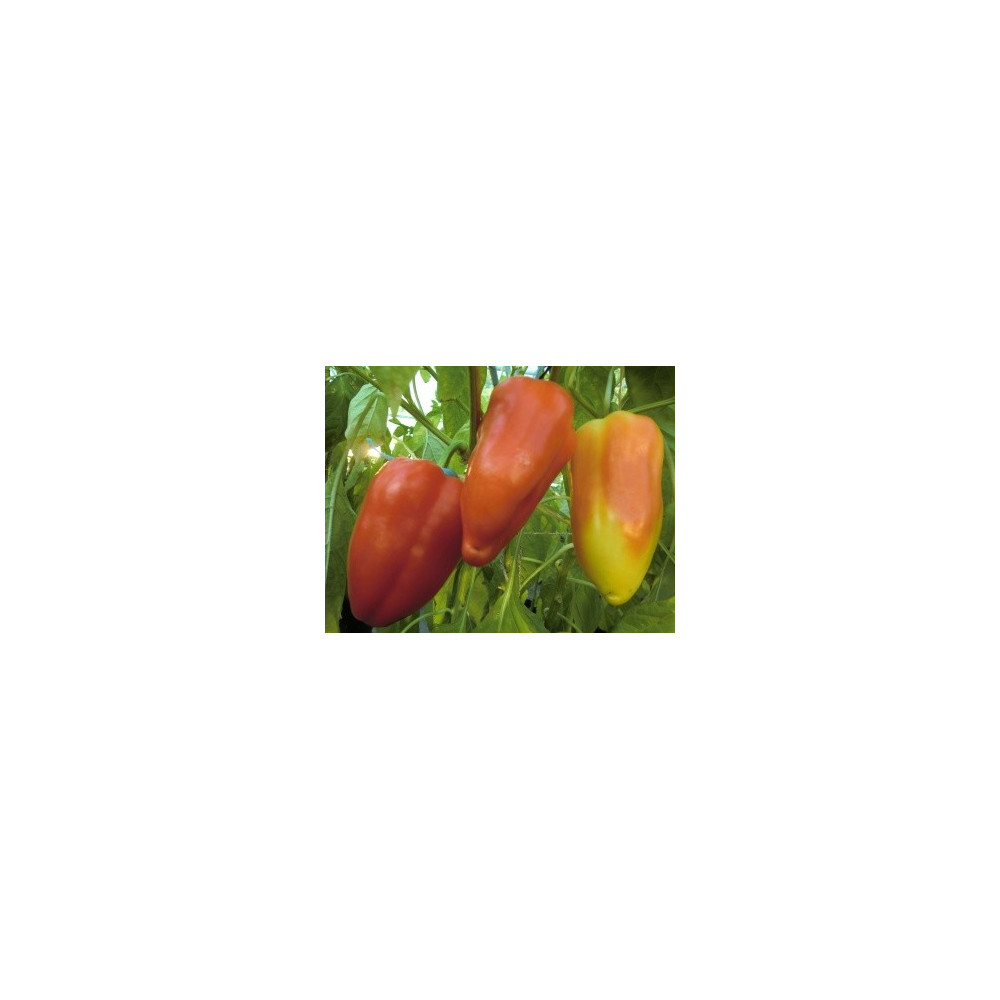 Sladká paprika s velkými oranžovými hranatými plody v plné zralosti. Velmi produktivní.