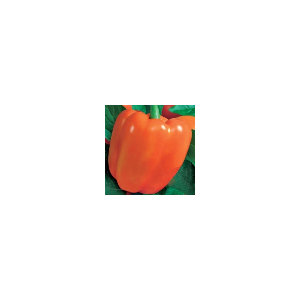 Sladká paprika s velkými oranžovými hranatými plody v plné zralosti. Velmi produktivní.