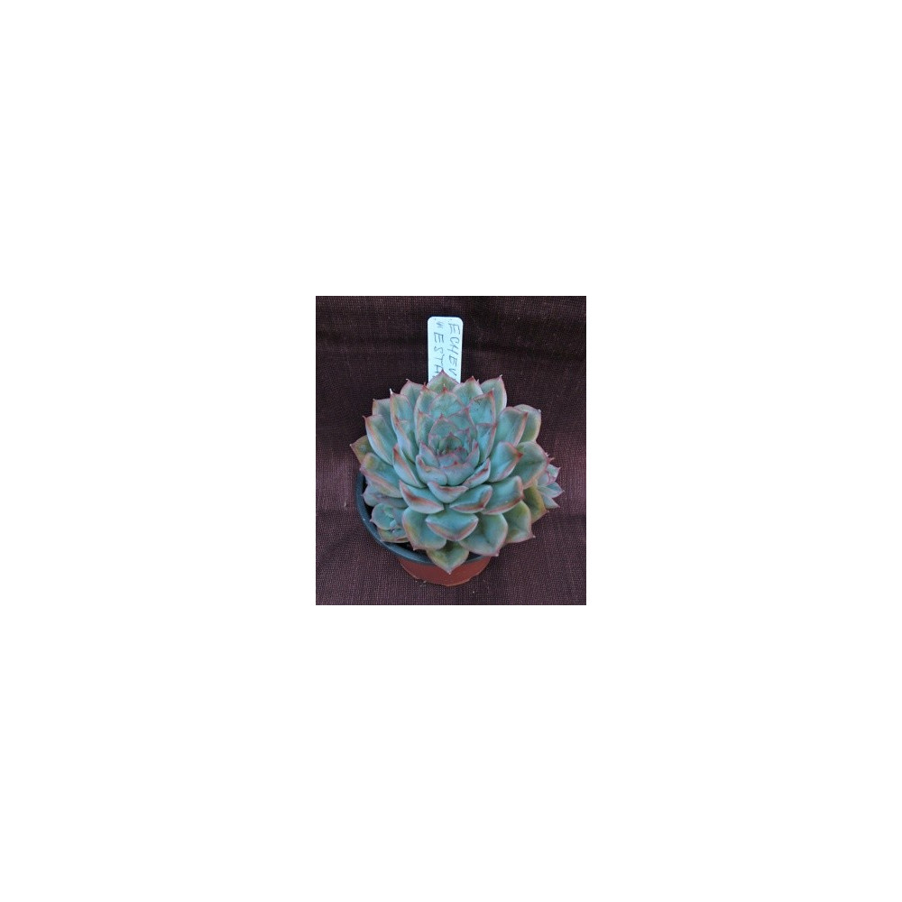 Echevérie, zelenošedé ojíněné listy s namodralým nádechem a červenými okraji na koncích listů v kompaktní přízemní růžici. Zvonečkové, žluté květy na květním stvolu. Nenáročná, sukulentní rostlina.