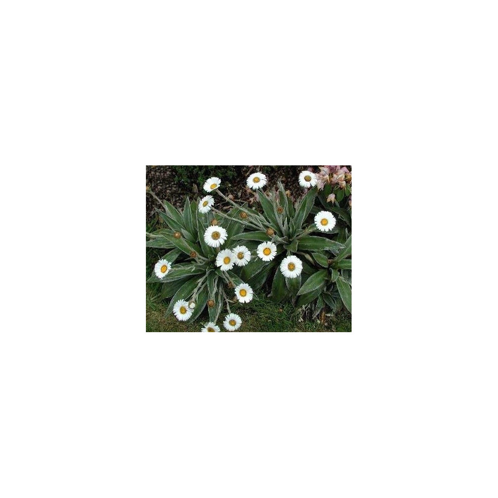 Vytváří růžice se širokými, zelenými listy až 30cm dlouhými, které jsou pokryty hustými, hnědými chloupky na spodní straně a okrajích listů. Bílé květy se žlutým středem. Endemit Nového Zélandu, kde roste v horských oblastech