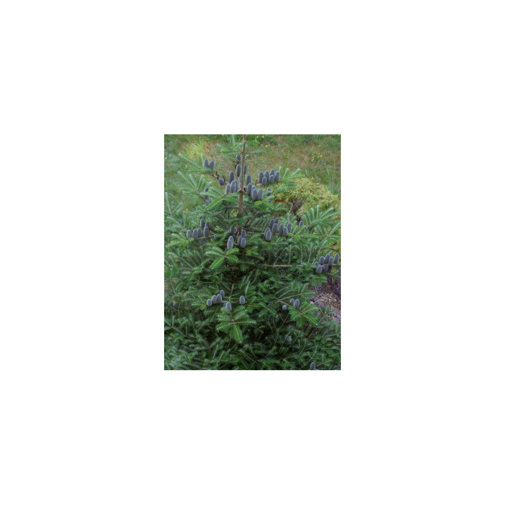 Jedle korejská, okrasná pomalu rostoucí, svícovitě postavené modrofialové šišky